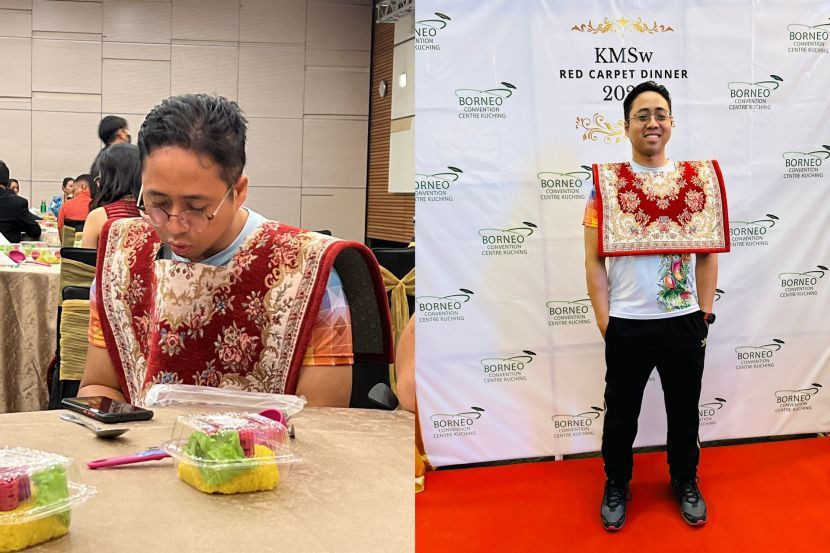 PENAMPILAN dan fesyen glamor pastinya menjadi pilihan untuk acara karpet merah. Sama ada mengenakan busana mewah mahupun berjenama, rekaan pereka fesyen atau menyewa kostum demi menepati tema, setiap tetamu majlis sudah pasti tidak mahu kalah dalam bergaya. Apakah dalam fikiran anda untuk majlis bertemakan karpet merah? View this post on Instagram A post shared by mStar (@mstaronlineofficial) Bagi pemuda ini, penampilannya mungkin dianggap biasa-biasa tetapi netizen menyifatkannya sebagai berfikir di luar kotak dan kreatif! Gayanya ternyata sangat menepati tema apabila dia menyarung sekeping karpet merah. Begitulah idea yang terlintas dalam fikiran pensyarah Kolej Matrikulasi Sarawak (KMSw) di Sejingkat, Kuching, Ahmad Farid Yang Abd. Talib yang menghadiri majlis makan malam anjuran Kelab Rekreasi KMSw di Pusat Konvensyen Borneo Kuching (BCCK) di Kuching, pada Sabtu lalu. Farid (belakang, dua, kiri) bersama rakan-rakan di majlis 'KMSw Red Carpet Dinner 2023'. Pemuda berusia 35 tahun itu pada mulanya mengakui kusut memikirkan apakah busana yang paling sesuai dipakai untuk mengikut tema yang ditetapkan bagi majlis 'KMSw Red Carpet Dinner 2023'. "Kalau tema red carpet atau karpet merah, orang mesti nak glamor atau sewa mahal-mahal saja. Saya fikir beli saja karpet merah saiz sederhana berharga RM20. Kalau tema red carpet atau karpet merah, orang mesti nak glamor atau sewa mahal-mahal saja. AHMAD FARID YANG ABD TALIB "Nak beli karpet bersaiz lebih besar harganya RM60, mahal pula. Keadaan ekonomi sekarang tak berapa baik. "Jadi, karpet harga RM20 ni saya potong di bahagian tengah dan sarungkannya, dengan saya berpakaian sukan di bahagian dalam,” katanya kepada mStar. Farid berpengalaman sebagai pensyarah selama 10 tahun. Senang disapa Farid, dia tidak menyangka terpilih sebagai pemenang bagi hadiah pakaian tercantik pada malam itu, dengan menerima hadiah berupa baucar beli belah bernilai RM50. ARTIKEL BERKAITAN: Abang Foodpanda berpeluh tiga lapis pakai kostum hantar makanan, "Pelanggan terkejut... mujur bukan betul-betul panda yang datang" ARTIKEL BERKAITAN: Wow! Pensyarah buat ramai terpana di hari terakhir berkhidmat, anggun gayakan baju istimewa hadiah persaraan "Syukur Alhamdulillah, tak sangka menang sebab semuanya hebat bergaya. Saya dapat hadiah baucar shopping RM50, kiranya balik modal dan ada baki RM30," ujar pensyarah Kimia dari Jabatan Sains ini. Farid terpilih sebagai pemenang pakaian terbaik. Berpengalaman sebagai pensyarah selama sedekad, Farid turut mendapat tempat ketiga dalam pertandingan menyanyi pada majlis tersebut. "Semua orang nyanyi lagu sedih-sedih, tapi saya pilih untuk menyanyi lagu yang lebih ceria iaitu lagu tema cerita Gaban yang merupakan watak superhero," katanya yang mengikuti pelbagai jenis kartun Jepun seperti Kamen Rider, Power Rangers, Gaban dan Ultraman. Susulan tular video yang memaparkan dirinya berpakaian 'karpet merah', pemuda yang berasal dari Kuala Kangsar, Perak ini tidak kisah dirinya dilabel sebagai 'Mr Karpet Merah'. "Ia mungkin sekadar nama, tapi saya okay je. Kalau dulu student panggil saya dengan panggilan Sir, dan akan datang bertukar Mr Red Carpet... saya tetap sempoi, tak ada strict. "Sebab viral juga, saya tak jadi nak potong karpet merah kepada dua bahagian. Ingatkan nak buat alas kaki, tapi saya simpan dulu buat masa ni," kata anak sulung daripada lima beradik itu. Gaya karpet merah yang dipilih turut menjadi perhatian rakan-rakan. Menerusi ruangan komen di akaun TikTok @4zjee, rata-rata netizen terhibur dengan penampilan si jejaka 'karpet merah' ini. "Di luar kotak betul. "Terpaling ikut tema. "Betul-betul red carpet dia pakai," demikian antara komen netizen. Jadilah sebahagian daripada geng mStar! Follow kami di Telegram, Twitter, TikTok, Facebook, Instagram dan YouTube