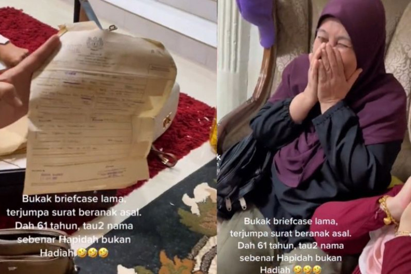 TIADA seorang pun manusia normal di dunia ini yang tidak mempunyai nama. Dalam Islam, nama mestilah membawa maksud yang baik dan dalam hal ini ibu bapalah yang memainkan peranan penting. Baru-baru ini tular sebuah video yang dikongsi oleh seorang guru, Liyana Naurah Ahmad Nor, 25, memaparkan ibu saudaranya yang mempunyai nama unik iaitu Hadiah Abd Rahman. Dia yang mesra disapa Liyana berkata, walaupun sudah berusia 61 tahun, ibu saudaranya itu hanya mengetahui nama sebenarnya bukanlah Hadiah, tetapi Hapidah pada Khamis. Menurutnya, ibu saudaranya yang dipanggil Mak Teh itu merupakan anak ketiga daripada tujuh adik-beradik dan sudah menggunakan nama unik tersebut selama 61 tahun, sepanjang dia hidup. Makcik Liyana menggunakan nama Hadiah selama 61 tahun. "Waktu tu kami semua kumpul ramai-ramai di rumah arwah atuk di Johor Bahru. Semua ada, Mak Teh pun datang juga. Tiba-tiba Pak Anjang beritahu arwah atuk ada tinggal duit RM100,000 dalam kotak. Lepas dengar tu kami semua carilah. "Sampailah terjumpa satu beg bimbit dan awalnya kami ingat duit yang ada dalam tu. Tapi bila buka rupanya dokumen-dokumen lama. "Tengah tengok dokumen tu ibu terjumpa surat beranak Mak Teh. Bila baca surat beranak terkejutlah kami semua sebab rupanya nama Mak Teh selama ni bukan Hadiah tapi Hapidah," katanya ketika dihubungi mStar. Sebaik terbongkarnya perkara itu, saudara maranya yang lain terus berseloroh memikirkan mungkin selama ini mereka mempunyai adik beradik lain bernama Hapidah. Liyana berkata, selain mempunyai nama Hadiah dan Hapidah, Mak Teh yang pernah bekerja di sebuah kilang di Tampoi turut dikenali sebagai Salmah di kampungnya. ARTIKEL BERKAITAN: Wanita nekad ‘panjat’ JPN buang ‘Muhammad’ di pangkal nama anak, menyesal biar keluarga campur tangan lepas bersalin ARTIKEL BERKAITAN: Bayi baru lahir tak boleh bin bapa kandung, ibu pasrah pilih 99 Asmaul Husna... “Bin nama Allah tak jadikan anak tu hina” Kata Liyana, sewaktu kecil, Mak Teh yang merupakan kakak kepada ibunya itu tidak tinggal bersama dengan keluarga kandung di Johor Bahru. Sebaliknya dia tinggal bersama dengan keluarga angkat yang merupakan adik-beradik datuknya di Batu Pahat. "Memang orang tak tahu nama dia Hadiah. Sebab kalau balik kampung kat Johor Bahru, memang orang kampung panggil dia Salmah. "Kalau kami pergi rumah dia pun, orang kenal dia dengan nama Salmah. Saya pun tak tahu kenapa panggil Salmah," katanya. Sementara itu, Liyana berkata nama yang ada pada surat beranak Hadiah dan Hapidah ini menunjukkan ia diberikan oleh bapa angkat Mak Teh iaitu Tik Mohamad Dom. Perkara tersebut diketahui selepas keluarganya meneliti kedua-dua surat beranak yang baru dijumpai. Hadiah merupakan anak ketiga daripada tujuh orang adik-beradik Liyana mengakui pernah berasa hairan kenapa nama ibu saudaranya itu bermula dengan huruf H sedangkan adik-beradik yang lain bermula dengan huruf R, termasuklah ibunya. "Bila tengok balik surat beranak lama dengan baharu, bahagian bawah pemberitahu tu tengok-tengok nama atuk saudara. Jadi dialah yang pergi daftar nama Mak Teh di JPN tu. "Pernah juga saya terfikir kenapa Mak Teh seorang sahaja yang nama Hadiah. Lepas tu nama dia mula dengan huruf H. Sebab nama ibu Rosnita Abd Rahman dan adik-beradik yang lain mula huruf R," katanya. Bercerita lanjut mengenai video itu, Liyana memberitahu Mak Teh tidak mengetahui ia dimuat naik di TikTok. Jelasnya, setelah video tersebut tular, Mak Teh terus popular kerana rakan-rakannya tidak berhenti menelefon untuk bertanya hal berkenaan. "Dia tak tahu saya masukkan dalam TikTok. bangun pagi esok tu baru saya beritahu dia. Dia terkejutlah dan tak sangka pula video tu viral. "Tapi lepas dia tengok semula video tu, dia pun komen juga. Siap beritahu dialah makcik yang nama Hadiah tu. Hanya Hadiah bermula huruf H dan adik-beradik lain bermula huruf R "Kawan-kawan dia tak berhenti call tanya betul ke nama sebenar dia Hadiah. Sebab orang kenal dia dengan nama Salmah dekat kampung," katanya. Video yang dimuat naik itu meraih lebih 100,000 tontonan dan lebih 10,000 tanda suka. Menjengah ruangan komen, rata-rata netizen terhibur dengan video berkenaan dan berseloroh bagaimana ibu saudaranya itu bersabar menggunakan nama Hadiah selama 61 tahun. "Dah 61 tahun jadi Hadiah. Sekarang jadi Hadiah 'terkejut' pula. "Terbongkar rahsia nama bukan Hadiah hahaha. Mesti makcik tu dulu pening fikir kenapa nama dia macam tu. "61 tahun mahu riuh satu kampung hahaha. Macam tak logik. Macam mana boleh jadi jadi begitu?" demikian komen netizen. Ada netizen yang berkongsi pengalaman sama yang bukan sahaja tersalah nama, malah tersalah tarikh lahir. "Weh hahaha kes saya pula dari kecil mak saya ingat hari jadi pada 26 Disember. Tiba-tiba masa umur 12 tahun, saya tengok surat beranak... lah hari jadi 18 Disember rupanya. "Mak saya pun nama Hadiyah. Memang dalam sijil lahir macam tu. Kalau sebut nama mak mesti ramai akan pastikan betul-betul sebab unik," kongsi netizen. Jadilah sebahagian daripada geng mStar! Follow kami di Telegram, Twitter, TikTok, Facebook, Instagram dan YouTube