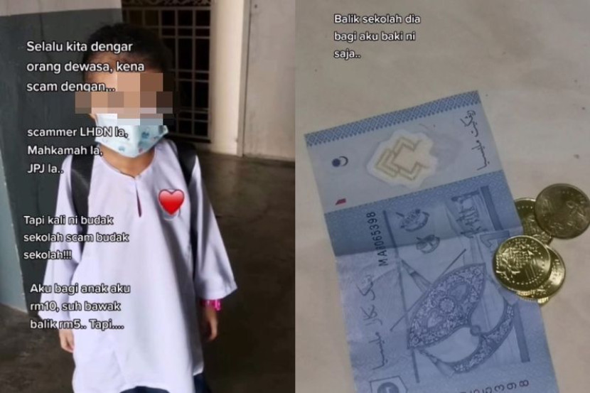 "Pandai betul budak yang scam ni. Sampai scam duit tiga orang budak kelas dia yang lain juga. Aduhai anak, kecil-kecil lagi dah kena scam," katanya.