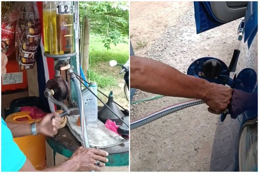 Menerusi satu video tular di TikTok, Muzhaffar sempat merakam detik berharga itu apabila dia singgah mengisi petrol di stesen minyak yang menggunakan pam analog.
