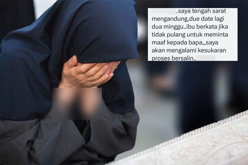 "Saya tengah sarat mengandung, due date lagi dua minggu. Ibu berkata jika tidak pulang untuk meminta maaf kepada bapa, saya akan mengalami kesukaran proses bersalin.