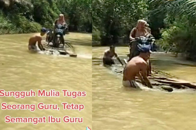 DEMI amanah untuk mendidik anak bangsa, seorang guru sanggup melakukan apa sahaja walaupun nyawa sendiri menjadi taruhannya. Bagi guru yang ditugaskan untuk mengajar di sekolah pedalaman, sudah semestinya mereka berdepan dengan cabaran yang bukan calang-calang setiap hari asalkan ilmu dapat disampaikan kepada para pelajar. Tular di aplikasi TikTok memaparkan video seorang guru wanita bersama motosikalnya dibawa di atas rakit untuk menyeberangi sungai. Kelihatan juga dua orang individu meredah air sungai separas peha untuk mengemudi rakit berkenaan agar selamat sampai ke seberang. Video yang memaparkan seorang guru menyeberangi sungai menggunakan rakit menyentuh hati warga maya. Sebaik sahaja sampai di seberang, kedua-dua individu berkenaan membantu guru wanita tersebut untuk turun daripada rakit dan naik ke tebing. "Sungguh mulia tugas seorang guru... tetap semangat ibu guru," demikian kapsyen yang ditulis pada video berdurasi sekitar 1.25 saat itu. ARTIKEL BERKAITAN: “Cikgu tak ada hak buat semua ini” - Rampas, baling dalam api! Tindakan guru bakar handphone pelajar dianggap keterlaluan ARTIKEL BERKAITAN: Selera eksotik! Makcik bertudung, atuk pakai kopiah jual sate ular... Ramai pesan jangan suka-suka cuba makanan tepi jalan Sehingga kini, video yang dimuat naik di TikTok @bustaman_perwira_siregar meraih melebihi 499,000 jumlah tontonan. Berdasarkan lokasi yang dinyatakan pada video tersebut, difahamkan kejadian itu dirakam di sebuah kawasan pedalaman di Nahulu Julu, Sumatera Utara, Indonesia, Semoga pemerintah dapat menyegerakan bantuan dan pembangunan seperti jambatan untuk kawasan macam ni. NETIZEN Bagaimanapun tidak dapat dipastikan sama ada kawasan berkenaan sememangnya tidak mempunyai jambatan atau kemudahan itu sudah rosak. Sementara itu, ruangan komen dipenuhi dengan pujian daripada warga maya yang kagum dengan kecekalan guru wanita berkenaan yang sanggup mengharungi cabaran demi para pelajarnya. "Yang macam ini sepatutnya layak terima anugerah guru cemerlang. "Tinggal anak-anak di rumah demi ajar ilmu kepada anak orang lain. Keluar dari rumah belum tentu pulang. Semoga cikgu sentiasa dalam rahmat Allah. "Besarnya pengorbanan guru di pedalaman sana. Terima kasih juga kepada orang kampung yang tolong permudah urusan guru," komen netizen. Netizen memuji semangat dan kegigihan guru wanita berkenaan. Dalam pada itu, ramai juga bersetuju supaya video berkenaan dikongsi di media sosial agar ia mendapat perhatian daripada pihak berwajib. "Upload banyak-banyak keperitan guru yang mengajar di pedalaman. Biar menteri tengok. "Semoga pemerintah dapat menyegerakan bantuan dan pembangunan seperti jambatan untuk kawasan macam ni," demikian antara komen warga maya daripada Malaysia dan Indonesia. Jadilah sebahagian daripada geng mStar! Follow kami di Telegram, Twitter, TikTok, Facebook, Instagram dan YouTube