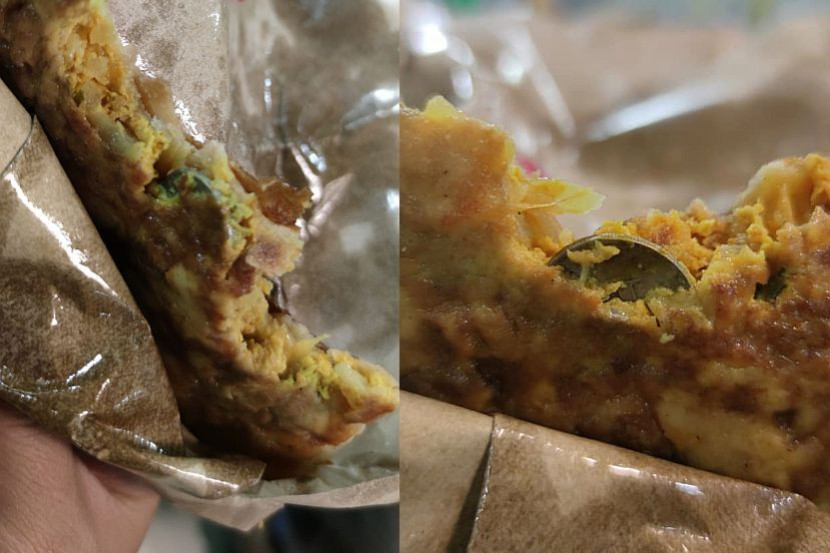 Berdasarkan beberapa gambar yang dimuat naik, kelihatan dua keping syiling 10 sen ditemui di dalam murtabak berkenaan.