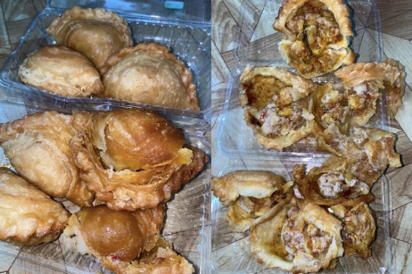 Berdasarkan beberapa keping gambar yang dikongsikan dapat dilihat dengan jelas keadaan inti karipap yang sudah rosak.