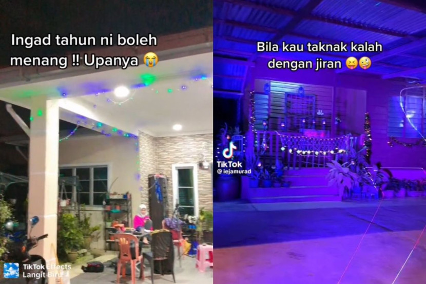 Dalam video tersebut pula, @Iejamurad menunjukkan suasana di rumah mereka yang meriah dengan cahaya lampu rona biru dan ungu yang berkelipan.