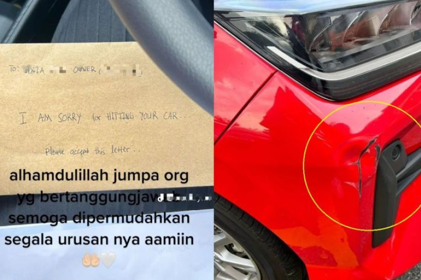 "Saya tahu ia bukan satu alasan dan saya mengambil tanggungjawab penuh atas tindakan saya. Saya datang hari ini untuk tengok keadaan kereta awak. Saya nampak ia kemek dan catnya juga rosak," tulisnya dalam surat itu.