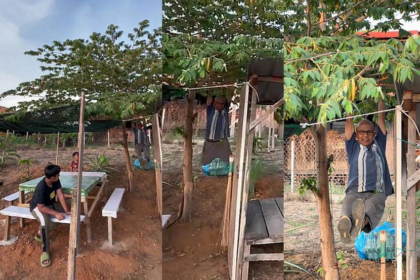 "Ayah kata buaian tu untuk cucu-cucu bermain apabila mereka balik ke kampung. Ayah memang suka DIY (buat sendiri) untuk kemudahan anak-anak dan cucu-cucu bersantai.