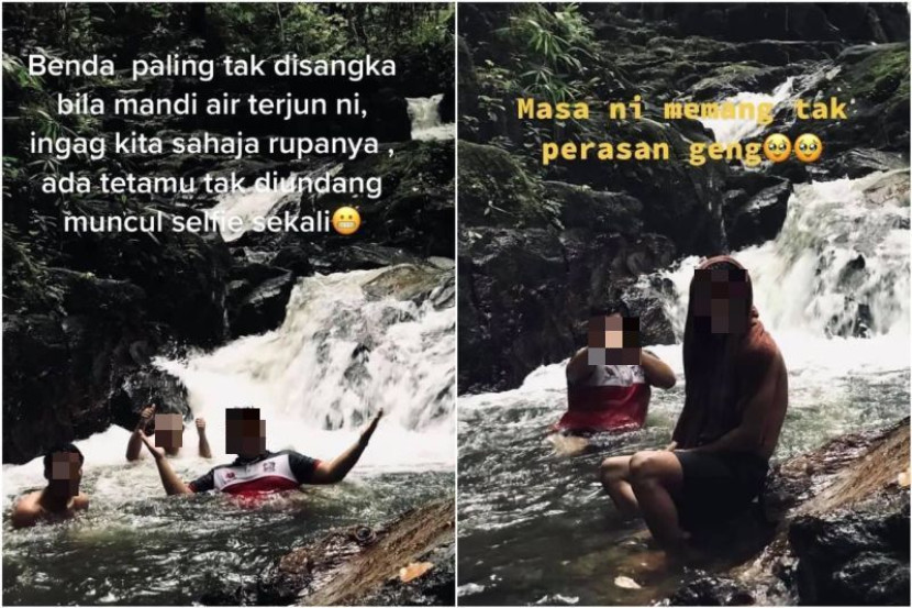Melalui satu video tular di TikTok, lelaki itu mengepilkan beberapa keping gambar menunjukkan sosok asing di sebalik deruan air terjun.