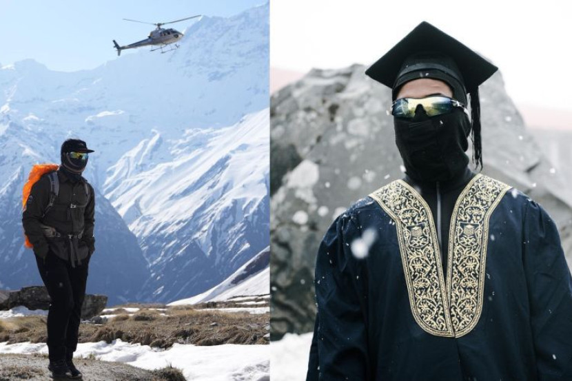 "Tarikh tu kena pula ke Nepal, dapat trip ke sana. Jadi saya pun bawa jubah, alang-alang boleh photoshoot kat sana. Lagipun, jubah konvo kan memang kena ambil awal. Saya rasa tak pernah lagi orang photoshoot jubah konvo dekat altitud yang tinggi.
