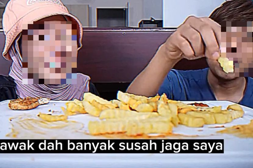 "Awak dah banyak susah jaga saya," kata teman lelaki berkenaan dengan gaya manja sambil mengunyah kentang goreng.