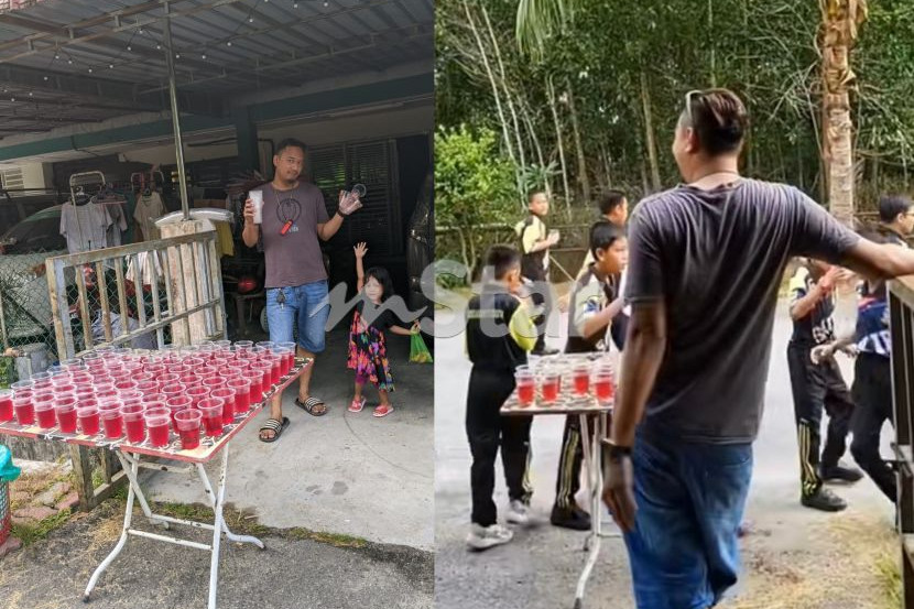 Shaf yang juga ibu kepada tiga cahaya mata menambah, sebanyak 100 cawan air sirap disediakan olehnya dan suami yang disusun di atas meja di hadapan pagar rumah mereka.