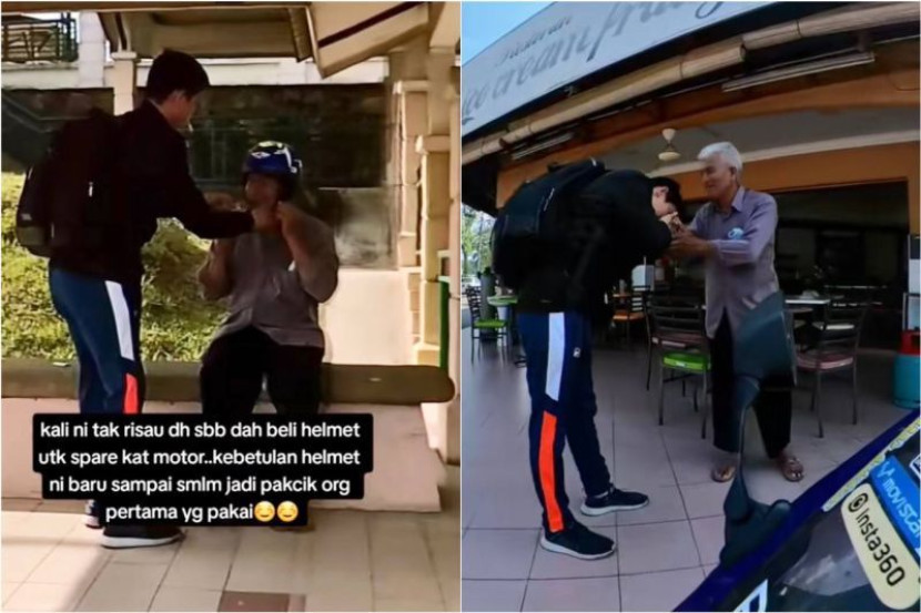 "Kali ni tak risau sebab dah beli helmet spare dekat motosikal. Kebetulan helmet ni baru sampai semalam, jadi pakcik orang pertama yang pakai.