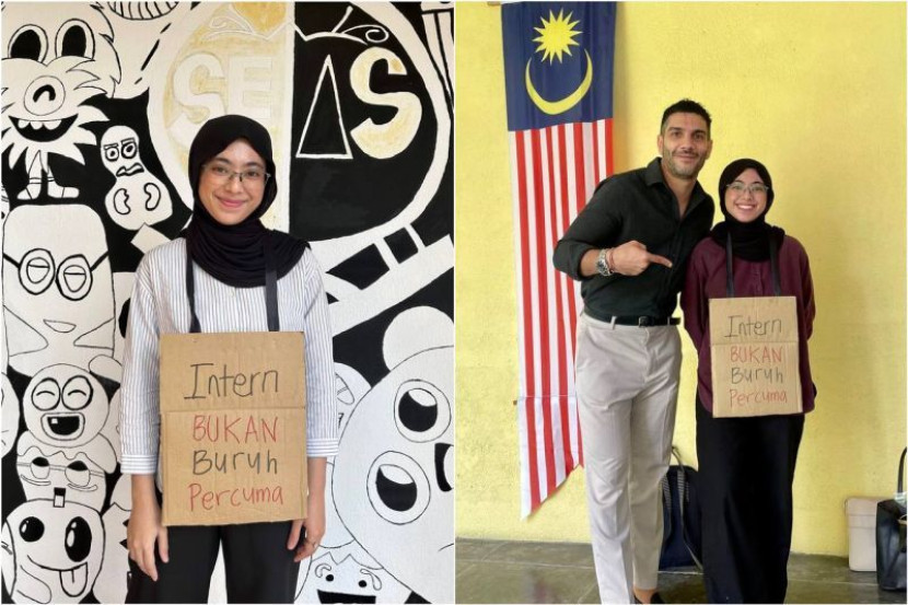 Namun begitu, baru-baru ini gempar di media sosial apabila seorang gadis membawa satu sepanduk dengan mesej tertulis 'intern bukan buruh percuma'.