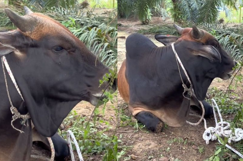 Dalam satu rakaman video yang tular, seekor lembu yang bersaiz besar dan berwarna hitam kelihatan sayu mengalirkan air matanya kerana bakal dikorbankan.