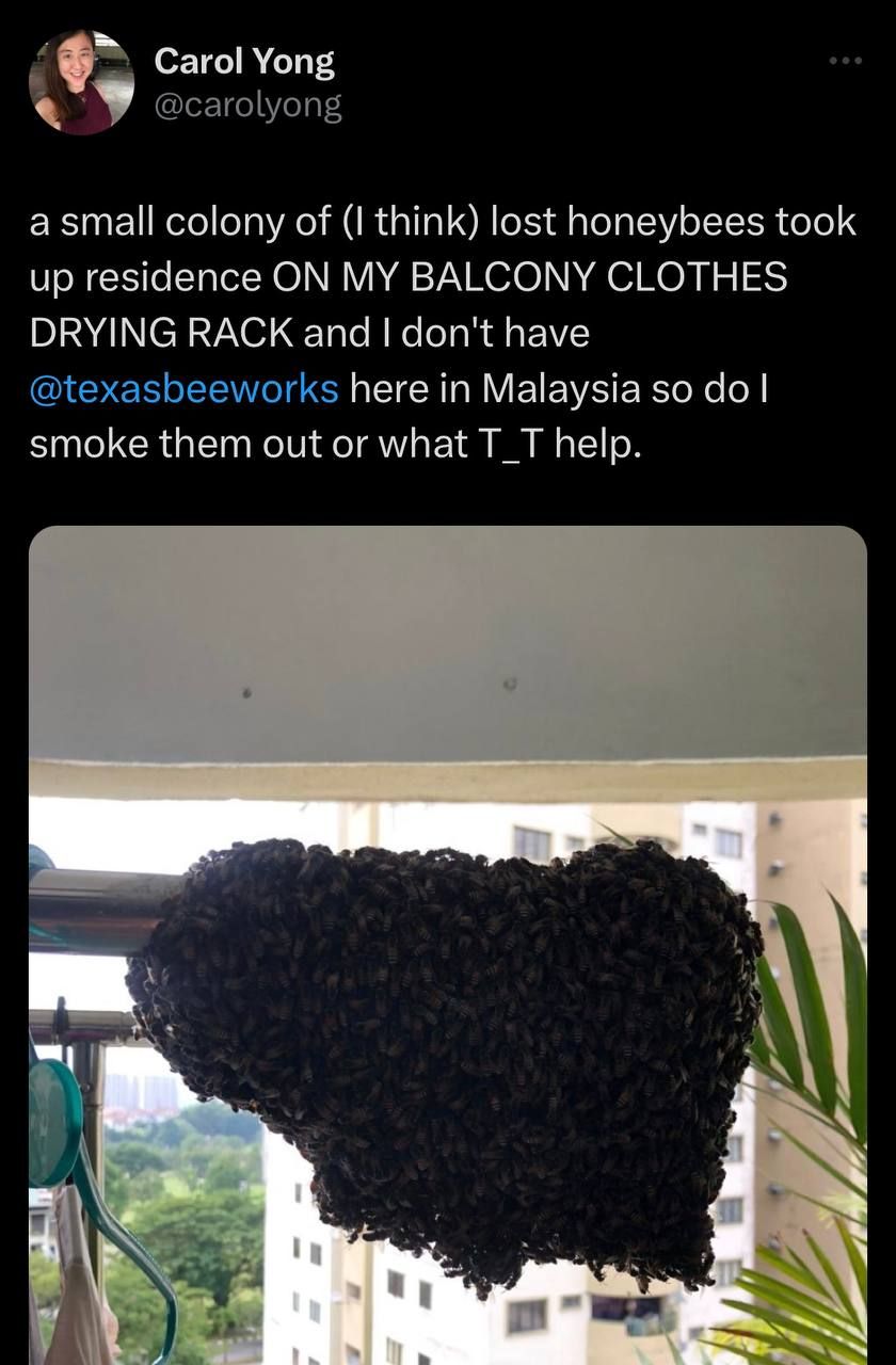 LEBAH sebagai agen pendebungaan memainkan peranan penting dalam ekosistem alam semula jadi. Namun, lebah yang juga merupakan serangga berbisa boleh membawa ancaman bahaya jika berada dekat dengan penempatan manusia. Begitulah kisah wanita ini yang terkejut apabila satu koloni lebah singgah di balkoni rumah pangsapurinya dan mula membina sarang. Perkongsian asal di Twitter. Dalam satu perkongsian tular di Twitter, wanita itu yang dikenali sebagai Carol Yong menceritakan detik getir dilaluinya untuk menghalau kumpulan lebah itu secara aman. "Saya rasa ini adalah koloni lebah madu yang kecil, mungkin mereka sesat dan sekarang cuba mencari tempat berteduh di balkoni saya. Mereka sudah mula membina sarang di ampaian baju saya. "Ada sesiapa kenal pakar lebah di Malaysia yang saya boleh hubungi. Saya tak nak sakiti mereka dan tahu mereka hanya nak cari rumah baharu tapi mohon bukan di kediaman saya. "Mungkin mereka salah anggap ampaian saya sebagai dahan pokok sebab nampak lebih kurang serupa. Berdekatan kawasan sini ada hutan, ada pokok-pokok tinggi, mungkin mereka boleh mencuba di situ. ARTIKEL BERKAITAN: “Yang hitam-hitam itu matanya” - Akak ni tunjuk cara masak anak lebah, fresh dari sarang! ARTIKEL BERKAITAN: [V] Kutu babi masuk telinga pun cari abang bomba... Tiga anggota ‘all out’ keluarkan serangga jahat, guna air tembakau je! "Sekarang ni apa cara terbaik untuk saya halau mereka?" kata Yong bermonolog sendirian. Melalui gambar yang disertakan Yong, dapat dilihat struktur awal sarang lebah sudah mula terbentuk di ampaian baju miliknya. "Apa yang istimewa sangat rumah saya ni sampai dipilih lebah ni? Permulaan hari yang kurang baik untuk saya. Saya ada hubungi pertubuhan bukan kerajaan (NGO) Penyelamat Lebah Malaysia. Bagus awak cuba halau lebah-lebah tu. Biasanya orang akan bakar terus seluruh sarang tu sampai mati semua lebah. WARGA MAYA "Mereka kata saya boleh cuba guna petrol, lebah tak suka bau kuat dari minyak petrol dan akan lari. Jadi jom kita cuba. "Rasa janggal pergi pam minyak dan isi petrol RON95 dalam botol susu, sampai akak dekat situ pun tanya apa yang saya tengah buat," cerita Yong. Menurut Yong, dia bersimpati dengan nasib lebah itu kerana tahu sifat haiwan itu yang rajin dan bekerja keras. Lebah di balkoni rumah Yong mula membina sarang. "Lebah adalah serangga yang comel dan hasil kerja mereka sangat menakjubkan. Tengok saja pada corak heksagon sarang lebah ni, hebat betul seni bina mereka. "Saya sempat ambil gambar sarang lebah ni sebelum saya mulakan 'kerja'. Saya harap lebah dan permaisurinya dapat keluar secepat mungkin," ujar Yong berasa sayu. Ternyata kaedah yang dicadangkan kepada Yong itu membuahkan hasil dan lebah-lebah itu bertempiaran lari meninggalkan sarangnya. Langkah yang digunakan Yong untuk menghalau lebah. "Saya tuangkan petrol ke atas kain buruk dan layangkan kain tu ke arah sarang. Yeay ia tidak mengecewakan. Semua lebah itu terus terbang pergi. "Tapi sedih, ada dalam 30 ekor lebah yang terkorban. Mungkin bau petrol itu terlalu kuat. Maafkan saya wahai rakan-rakan lebah. "Semoga permaisuri lebah dan tentera-tenteranya dapat menjumpai rumah baharu yang bukannya ampaian baju di kediaman orang lain," kata Yong menutup bicara. Antara lebah yang menjadi korban. Menjengah ke ruangan ciapan balas, rata-rata warga maya kagum kerana Yong prihatin dan tidak zalim dalam menangani isu lebah yang dihadapinya. "Bagus awak cuba halau lebah-lebah tu. Biasanya orang akan bakar terus seluruh sarang tu sampai mati semua lebah. "Harap lebah-lebah ni dapat jumpa rumah baharu yang lebih bersesuaian dan selamat untuk mereka. "Walaupun halau guna petrol, tapi nampak dekat gambar, ada lebah terkorban tu sampai bahagian dalam badan dia terkeluar, beracun betul ya bau petrol ni," kata sebahagian warga maya. Jadilah sebahagian daripada geng mStar! Follow kami di Telegram, Twitter, TikTok, Facebook, Instagram dan YouTube