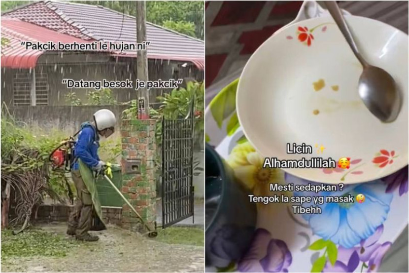 "Tiba-tiba kilat mula sabung-menyabung dan guruh berdentum, pakcik tu terpaksa juga berhenti potong rumput. Tengah hujan sambil pakcik tu berteduh, kami sempat bagi dia pekena nasi goreng dan kopi panas, memang layan.