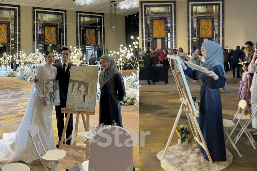 Baru-baru ini tular satu video di aplikasi TikTok, memaparkan seorang gadis rancak berkarya di hadapan pelamin dan kelihatan sibuk 'menconteng' kanvasnya untuk mengabadikan gambar pasangan pengantin.