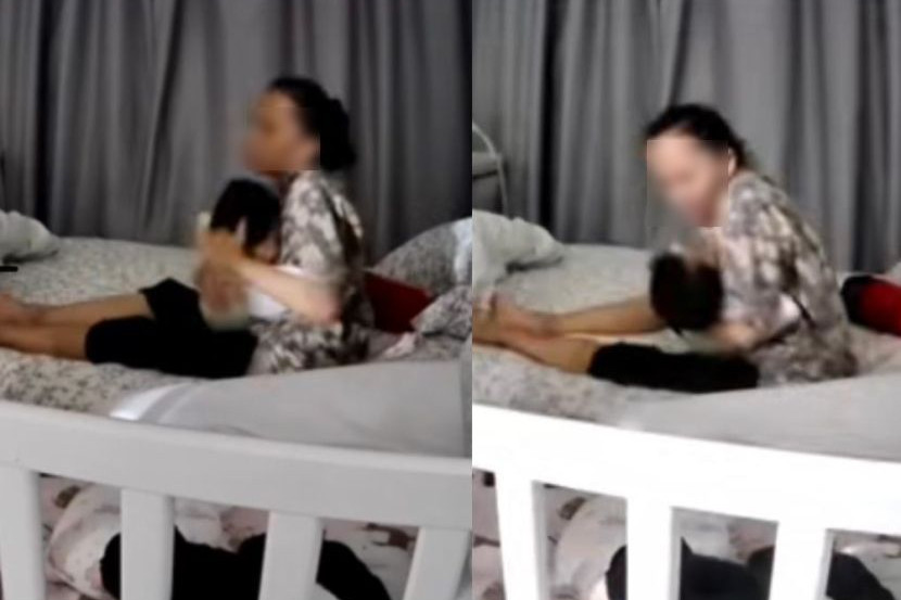 Menerusi video daripada rakaman kamera litar tertutup (CCTV) di dalam bilik, kelihatan pembantu rumah itu sedang terbaring di atas katil bersama bayi Amyra yang berusia dua bulan, sebelum dilihat mengangkat dan mengasari si kecil kerana tidak mahu tidur.