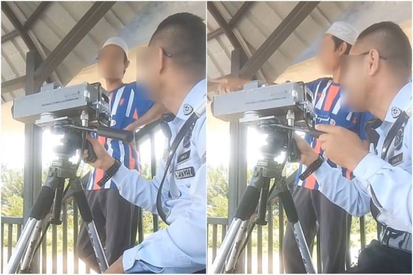 Melalui satu video tular di TikTok, anggota polis itu ketika ditegur remaja tersebut sedang mengendalikan kamera perangkap had laju di tepi jalan dipercayai di Pahang.