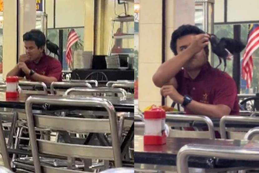 Maka tidak hairanlah video yang memaparkan aksi seorang lelaki makan di sebuah restoran menjadi tular kerana dia 'ditemani' seekor burung gagak.