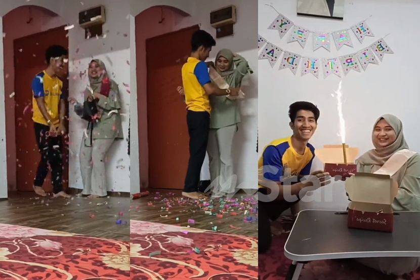 TIDAK perlu diberikan hadiah mahal atau mewah, cuma dengan sepotong kek seorang lelaki dapat membuatkan isterinya tersenyum menyambut hari ulang tahun kelahiran. Sederhana tapi amat bermakna, begitulah reaksi rata-rata netizen yang terharu dengan usaha yang ditunjukkan si suami menerusi perkongsian video di laman sosial. View this post on Instagram A post shared by mStar (@mstaronlineofficial) Nazmi Anwar Nahar Nizam berkata, kejutan dibuat sempena hari ulang tahun ke-25 isterinya, Nur Damia Hidayah Faizul Azlan, pada lewat petang Khamis. Mesra disapa Nazmi, katanya, dia sememangnya merancang untuk membuat kejutan tersebut di rumah selepas mendirikan rumah tangga pada Mei lalu. “Saya dan isteri baru lima bulan berkahwin. Sebelum ini pun memang biasa sambut birthday dia (isteri) setiap tahun sejak kami bercinta pada 2018, bertunang (2022) sampai sekarang. “Sebelum ini saya buat kejutan di restoran biasa-biasa je. Cuma tahun ini dapat buat di rumah sebab dah kahwin, itu pun simple je,” katanya kepada mStar. Mula berkenalan ketika belajar di UiTM Jengka, Pahang. Mula berkenalan ketika sama-sama menyambung pengajian di Universiti Teknologi Mara (UiTM) di Jengka, Pahang pada 2017, Nazmi yang juga berusia 25 tahun pada awalnya mahu membeli sebiji kek sempena hari jadi isterinya, namun membatalkan hasrat tersebut. ARTIKEL BERKAITAN: Pemuda 19 tahun tunjuk ‘effort’ luar biasa, sanggup naik bas 4 jam nak pujuk cik tunang... Hilang merajuk nampak beg Lego! ARTIKEL BERKAITAN: Isteri terharu tapi musykil suami buat kejutan sebelum keluar rumah, tulis nota di kotak ubat nyamuk! Lebih pelik 2 kali beri duit belanja “Ingatkan nak beli sebiji kek tapi sebab kami hanya tinggal berdua, nanti membazir pula. Jadi, saya cuma beli dua potong kek untuk setiap seorang. “Sebelah malamnya, saya bawa isteri pergi makan bersama di kedai makan biasa,” ujarnya yang berasal dari Kuantan, Pahang. Bertunang pada 2022. Mengulas mengenai rakaman video kejutan itu, Nazmi yang bertugas sebagai pemandu e-hailing memaklumkan kepada isterinya bahawa dia sedang bekerja di luar. “Sebenarnya saya buat Grab siang tu, selepas tu saya beli kek dan buat persiapan untuk dekorasi sebelum isteri balik ke rumah sekitar pukul 6 petang. “Tak sangka masa dia balik tu tengah stres sebab hal kerja sampai mata berair. Dia masuk rumah nampak saya di belakang pintu terus tersenyum tak jadi menangis,” katanya. Berkahwin pada Mei 2023. Dalam pada itu dia amat bersyukur kerana dikurniakan seorang isteri yang amat memahami dan bertolak ansur serta bersikap sederhana. “Isteri faham kami baru pindah rumah selepas kahwin. Jadi, banyak guna duit untuk beli perabot dan peralatan elektrik sebab rumah kosong. Apabila suami tengok kamu gembira dan teruja, paling penting menghargai usaha dia... segala sakit dan penat pun boleh hilang. NAZMI ANWAR NAHAR NIZAM “Sejak zaman bercinta lagi dia faham kesusahan saya. Paling susah sewaktu saya terbabit dalam kemalangan ketika menunggang motosikal kena langgar dengan babi. “Saya cedera teruk di buku lali, tangan kiri dan pinggang serta terkena hentakan kuat. Sebulan cuti sakit, tapi dia sanggup datang dan ambil berat pasal saya,” katanya yang sebelum ini mencari rezeki sebagai penghantar barang. Nazmi bersyukur dikurniakan isteri yang amat memahami. Bagi Nazmi, sama ada suami mahupun isteri, hargailah pasangan masing-masing dan terima mereka seadannya di waktu susah dan senang. “Kepada wanita, sentiasa ingat lelaki penat bekerja untuk menghalalkan kamu dan melakukan apa yang kamu mahu sehabis baik demi membahagiakan kamu. “Percayalah apabila suami tengok kamu gembira dan teruja, paling penting menghargai usaha dia... segala sakit dan penat pun boleh hilang,” katanya lagi. Jadilah sebahagian daripada geng mStar! Follow kami di Telegram, Twitter, TikTok, Facebook, Instagram dan YouTube