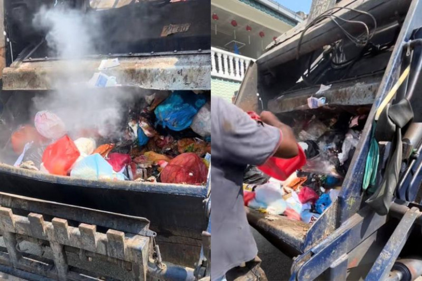 Melalui satu video tular di TikTok, kelihatan kepulan asap kecil daripada bahagian belakang sebuah lori sampah dipercayai daripada bahan buangan yang mudah terbakar.
