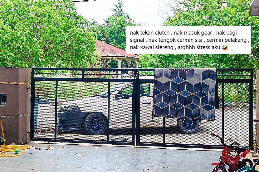 “Nak tekan clutch, nak masuk gear, bagi signal, tengok cermin sisi, cermin belakang dan kawal stereng. Ahh... stres saya.