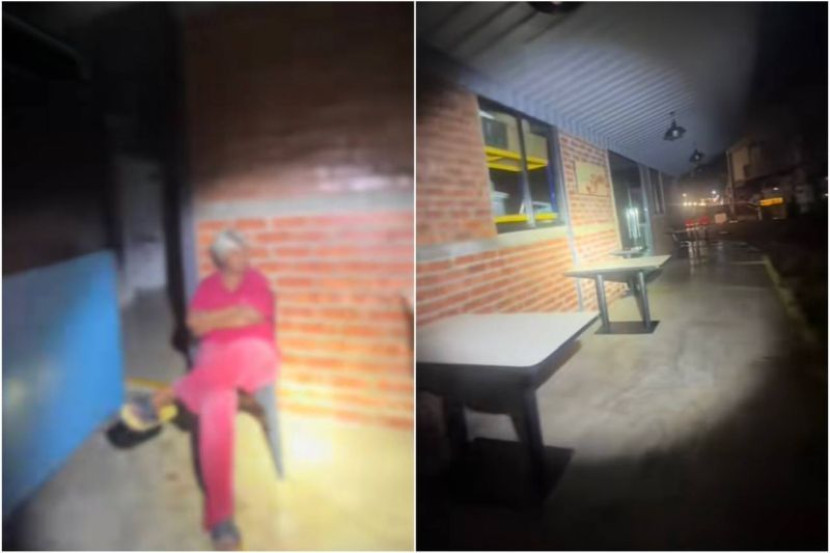 Warga emas tersebut dilihat duduk berseorangan dalam kegelapan malam di bahagian anjung luar sebuah restoran yang sudah ditutup.