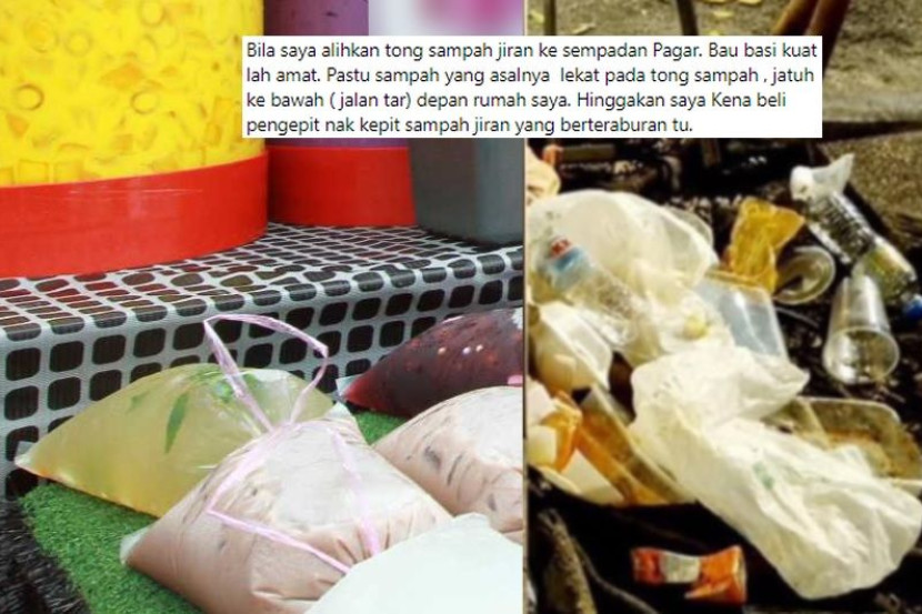 "Sampah yang asalnya lekat pada tong sampah, jatuh ke bawah (jalan tar) depan rumah saya. Hinggakan saya kena beli pengepit nak kepit sampah jiran yang berteraburan tu.
