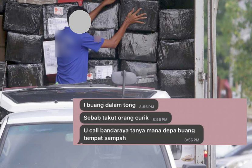 Menerusi tangkap layar perbualan yang dikongsikan, pekerja penghantaran terbabit menyatakan barang tersebut telah dibuang kerana van yang digunakannya sudah penuh dengan bungkusan.