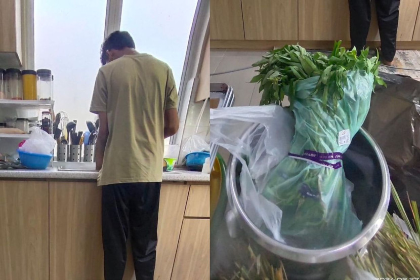 Dalam hantaran yang dibuat, wanita ini turut memuat naik sekeping foto menunjukkan anak lelakinya yang sedang meningkat dewasa sibuk menyediakan bahan-bahan untuk memasak.