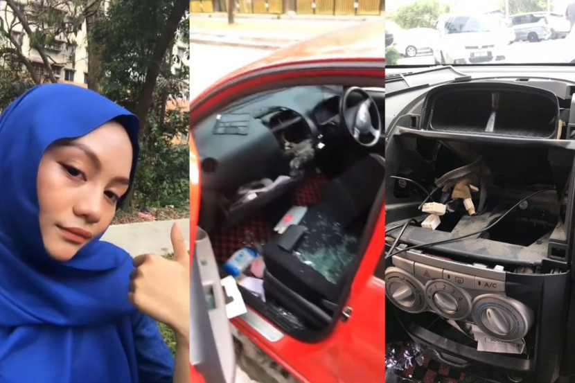 Wanita ini terkejut apabila melihat keadaan keretanya selepas diceroboh.