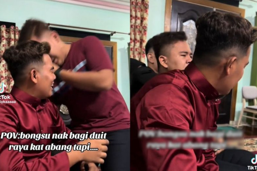 Rakaman tersebut memaparkan anak bongsu dalam sebuah keluarga menangis teresak-esak ketika menghulurkan sampul berisi duit raya kepada abangnya!