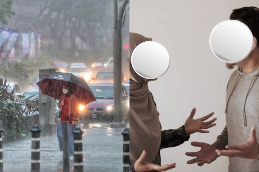 "Saya bawa kereta pergi kampus, lepas tu tadi hujan lebat gila. Masa memandu saya nampak dua pelajar perempuan sedang berjalan bawah hujan dengan memakai kasut tumit tinggi menuju ke kolej mereka, jalan pun dah senget-senget.