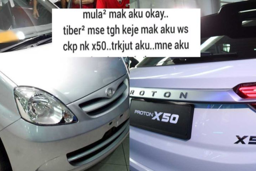 "Mula-mula mak aku okay, tiba-tiba semasa aku tengah kerja, mak WhatsApp cakap nak (Proton) X50.