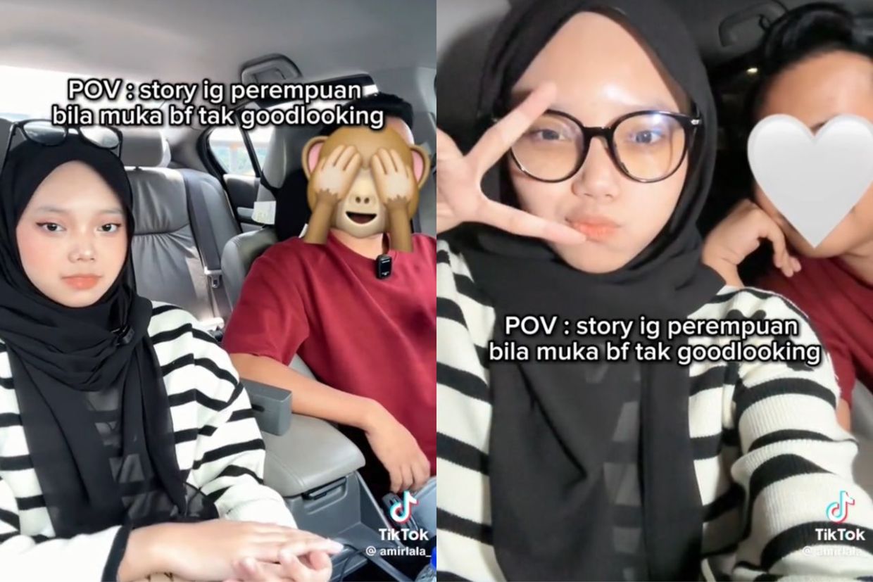 "Story Instagram perempuan bila muka BF (boyfriend) tak good-looking (kacak)," tulis wanita itu pada video.