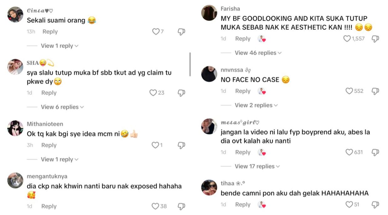 "Saya selalu tutup muka kekasih sebab takut ada yang cakap tu teman lelaki dia.