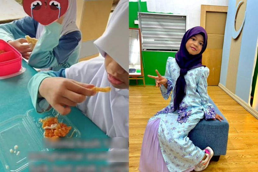 "Setiap kali waktu rehat, Haura akan makan ayam goreng popcorn yang dibeli berasingan daripada kantin. Tapi masalahnya saya tak pernah bagi duit poket dekat Haura sebab saya ingat dia makan percuma di sekolah dengan program RMT.