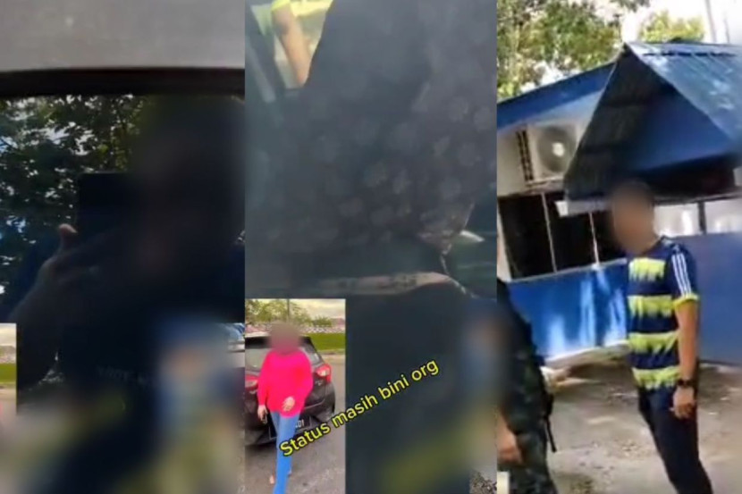 Pada waktu sama, turut kelihatan seorang anggota penguat kuasa bersama seorang lelaki memakai baju-T, dipercayai kedua-duanya rakan sekerja sedang berbual di belakang Myvi tersebut.