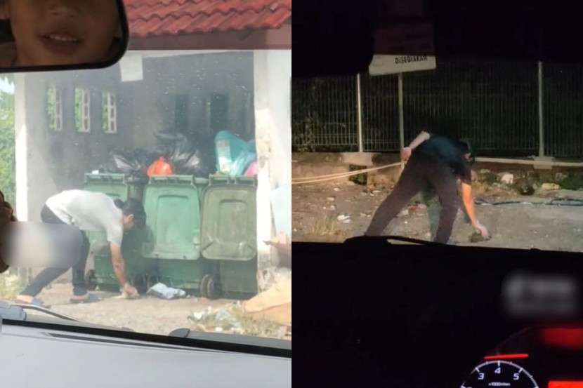 Tangkap layar video ketika suami Sarah mengutip sampah.