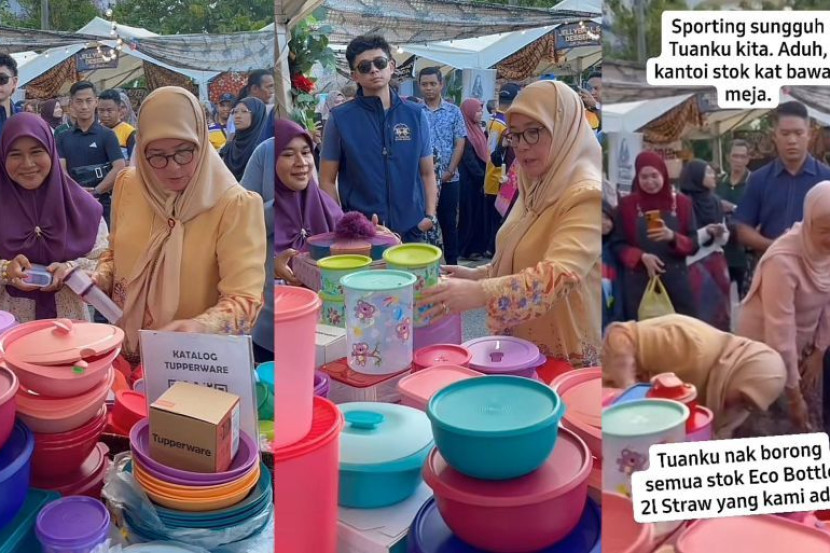 "Rupanya Tengku Ampuan Azizah juga sangat sukakan Tupperware! Tiba-tiba, booth kami menjadi tumpuan ramai semalam apabila Tuanku sudi mencemar duli shopping sakan di booth kami.