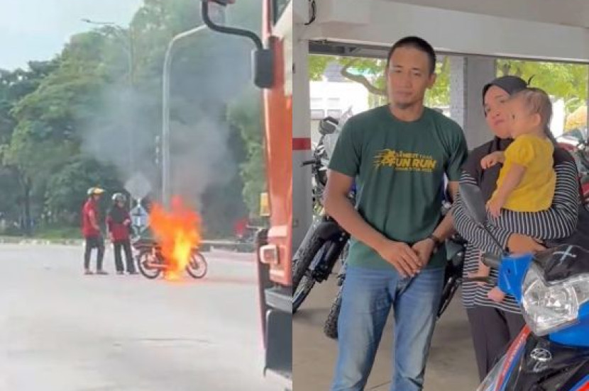 SEPASANG suami isteri berdepan detik malang apabila motosikal dinaiki mereka terbakar pada petang Ahad.