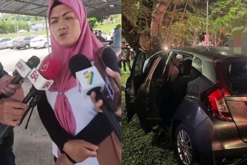 Haslinda ketika ditemu bual di Hospital Tuanku Ja'afar (HTJ) Seremban, pada Selasa. (Gambar kanan) keadaan kereta Honda Jazz selepas merempuh dua motosikal.