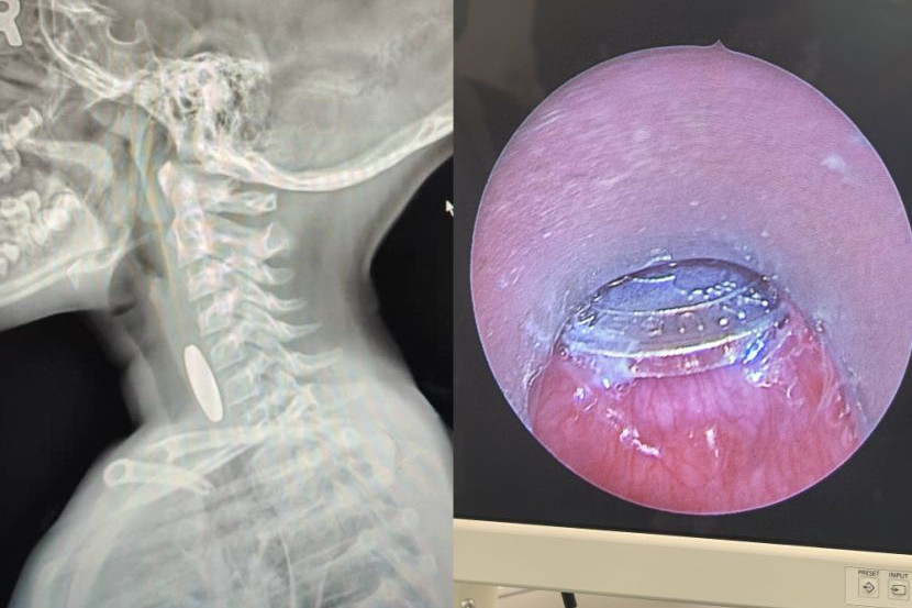 Ujar doktor tersebut, hasil imbasan x-ray menunjukkan sesuatu seperti sekeping duit syiling yang tersekat pada saluran esophagus kanak-kanak berkenaan.