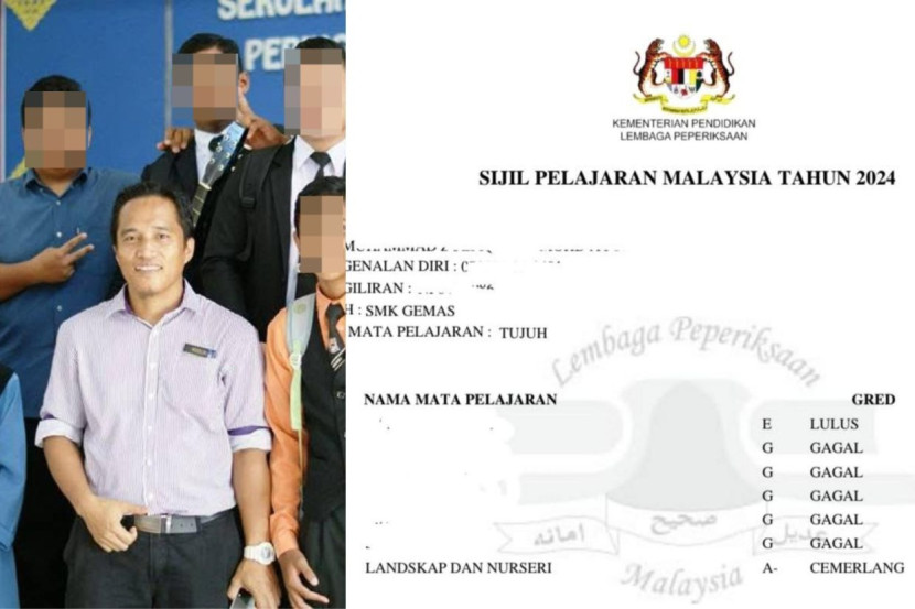 SEJAK keputusan Sijil Pelajaran Malaysia (SPM) bagi sesi 2024 diumumkan pada Khamis, pelbagai kisah suka dan duka dikongsikan di media sosial untuk dijadikan inspirasi dan pengajaran.Namun perkongsian cikgu Muslim Ismail yang merupakan seorang pendidik di Sekolah Menengah Kebangsaan, Gemas, Negeri Sembilan cukup menyentuh hati. Bukan gara-gara kecewa, tetapi cikgu Muslim Ismail berasa ralat apabila tidak dapat meraikan kejayaan kecil diperoleh seorang pelajarnya yang sebelum ini dianggap 'hilang arah'.Dalam hantaran penuh menyentuh hati itu, Muslim menunjukkan keputusan pelajar tersebut yang memperoleh A- bagi subjek Landskap dan Nurseri.Cikgu Muslim merupakan seorang pendidik di SMK Gemas."Hari ini dia dapat A-. Tapi saya tak dapat jumpa dia untuk ucap tahniah. Dia dah 'pergi' Isnin lepas kerana jangkitan kuman selepas pembedahan apendiks."Awak (arwah) tak banyak dosa... nanti tolong saya kalau saya di 'sebelah' satu lagi. Pinta pada Tuhan supaya saya diampunkan," ujarnya sambil menitipkan 'pesanan' pada arwah.Jika diteliti pada slip keputusan yang dilampirkan, pelajar tersebut turut mendapat gred 1E dan 5G (gagal) bagi enam lagi mata pelajaran.Bercerita lanjut, Muslim memberitahu pelajarnya ini pernah 'menghiasi' senarai murid bermasalah kerana terlalu kerap ponteng dan hampir-hampir digugurkan daripada sistem persekolahan sewaktu di Tingkatan Empat.ARTIKEL BERKAITAN: ‘Dibayar’ untuk setiap A, pelajar cemerlang SPM gembira terima ganjaran - “Ibu tunaikan janji on the spot”ARTIKEL BERKAITAN: Berkat nenek baca Yasin di luar dewan peperiksaan, cucu raih keputusan SPM cemerlang - “Berjurai air mata sebab kau dik”Malah, murid tersebut sering gagal dalam subjek-subjek akademik termasuklah Landskap dan Nurseri. "Mungkin dunia persekolahan tidak mesra padanya, bidang akademik penuh persaingan dan perbandingan mungkin menyebabkan dia menjauh disebabkan kelemahannya untuk memahami dan mengingat."Dalam subjek landskap yang saya ajar, dia tak pernah lulus pun peperiksaan tapi dia rajin dan ringan tulang menyiapkan tugasan. Walaupun tidak sempurna, tetapi dia berusaha."Saya tak marah pun sebab saya tahu kelemahannya dan kadang-kala apabila dia ditinggalkan bas selepas tuisyen petang. Waktu saya hantar pulang, sempat juga saya titip kata-kata," ceritanya lagi. Awak gagal beberapa subjek SPM saja tapi awak tak gagal di hati kami.NETIZENMengimbas kembali kenangan manis bersama pelajarnya ini, cikgu Muslim menyedari minatnya dalam bidang seni membuatkan dia berjaya menarik minat pelajar itu kembali ke sekolah."Dia suka menyanyi. Saya masukkan dia dalam kumpulan puisi dan lagu sekolah. Kami tak menang, tapi dia mula suka ke sekolah."Mungkin sebab rasa dihargai. Mungkin itu juga menjadi antara memori terbaiknya di alam persekolahan," ujarnya.Komen netizen pada hantaran asal.Perkongsian tersebut turut membuka mata ramai terhadap sistem pendidikan hari ini, terutama peranan Mata Pelajaran Vokasional (MPV) seperti Landskap dan Nurseri yang sering dipandang sebelah mata oleh sesetengah pihak."Tahniah cikgu. Berkat usaha dan didikan cikgu... anak murid berjaya. Tahniah cikgu."Awak gagal beberapa subjek SPM saja tapi awak tak gagal di hati kami. Sedih la pula. Semoga arwah ditempatkan dalam kalangan orang-orang beriman."Allahuakbar, moga dia ditempatkan dalam kalangan orang beriman. Saya kagum dengan cara awak Muslim. Tarik pelajar ke arah yang dia minat. Apabila ada minat, baru dia akan suka ke sekolah," komen beberapa netizen.