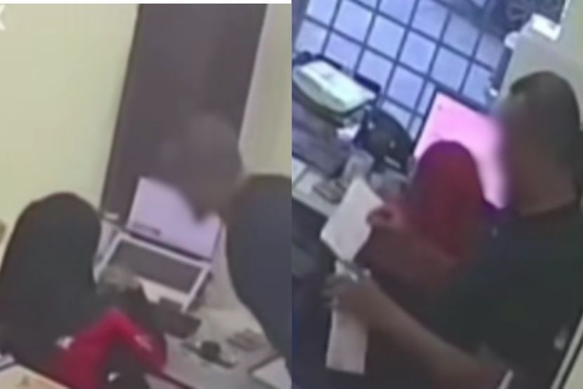 Rakaman CCTV majikan menampar komputer riba terkena muka pekerja.