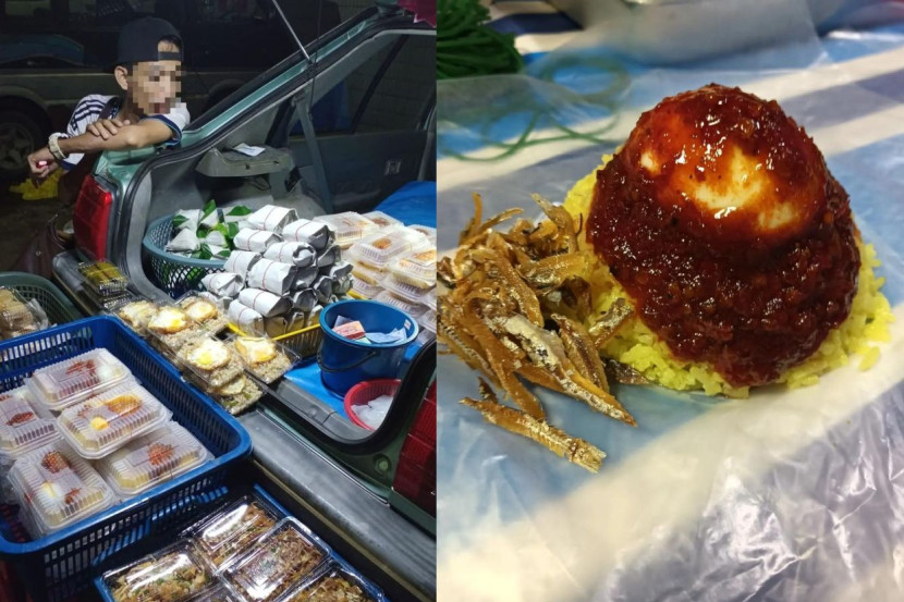 Berdasarkan foto yang dimuat naik, pasangan itu berniaga nasi lemak menggunakan kereta di lokasi yang tidak dinyatakan.