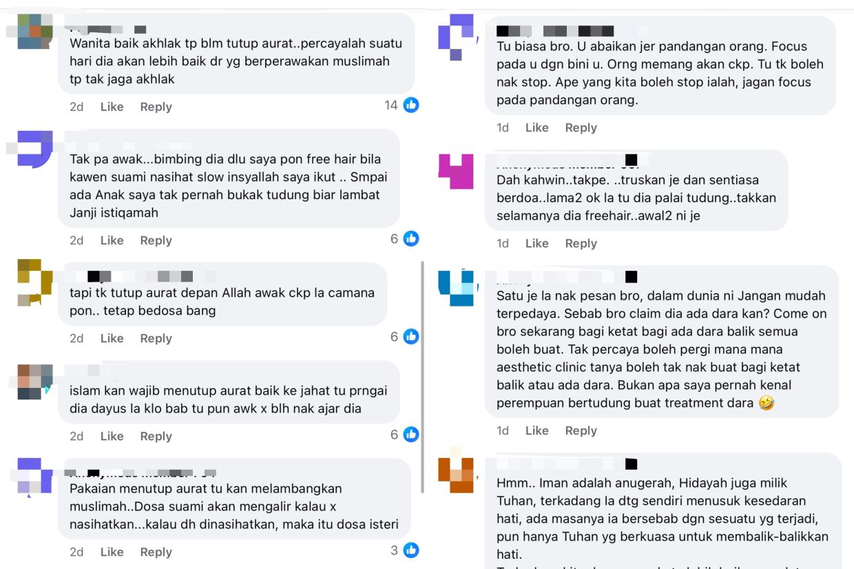 "Jangan dengar sangat cakap orang. Banyak berdoa isteri akan berubah. Ikut orang semua tak betul. Padahal mereka pun tak baik mana," komen beberapa netizen.