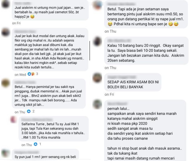"Ini aiskrim perisa asam masin pun orang jual pada hargaRM2.90," katanyasambil memuat naik sekeping gambar aiskim yang dijual peniaga lain.