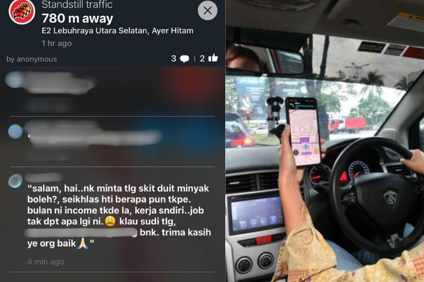"Bulan ni pendapatan tiada, kerja sendiri," tulis pengguna Waze tersebut.